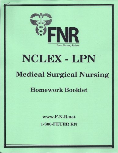LPN NCLEX 1,200 new style questions with answers and rationales updated 2011. Will you receive 4 booklets (300 questions each book) one of each subject. Medical Surgical, Women's Health & Maternal, Pediatrics and Psychiatric. We have been helping nursing students pass the NCLEX since 1971. Questions include: MEDICAL/SURGICAL The Nurse and the Law, Management of Patient Care, Infection Control, Safety, Emergency Nursing, Nutrition, Fluids & Electrolytes, Nursing Care of Adults with: Cardiovascular, Respiratory, Acid-Base, Gastrointestinal, Hepatic-Biliary-Pancreatic, Endocrine, Genitourinary, Oncology, Connective Tissue, Musculoskeletal, Sensory, Neurologic and Infectious Disorders. WOMEN'S HEALTH MATERNAL & NEWBORN Legal and Ethical Issues, Cultural Diversity and Health Beliefs, Human Reproduction, Infertility, Contraception, Sexually Transmitted Diseases, Normal Prenatal Period, Complications During Prenatal Period, Labor and Delivery, Post Partum, Normal Newborn, Complicated Newborn, Women's Health Issues. PEDIATRIC Growth and Development, Nursing Care of Children with Cardiovascular, Respiratory, Gastrointestinal, Genitourinary, Neurologic, Hematologic, Oncologic, Endocrine Diseases, Pediatric Emergencies, Communicable Diseases, Child Abuse, AIDS and Attention Deficit Disorder. PSYCHIATRIC Cultural Diversity, Nursing Process, Phases of the Nurse-Patient Relationship, Communication, Parameters and Boundaries, Legal and Ethical Issues, Charge Duties, Anxiety and Defense Mechanisms, Schizophrenia, Dementia, Mood Disorder, Alcoholism.