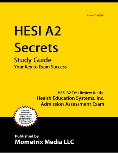 HESI A2 Secrets helps you ace the Health Education Systems, Inc. Admission Assessment Exam, without weeks and months of endless studying. Our comprehensive HESI A2 Secrets study guide is written by our exam experts, who painstakingly researched every topic and concept that you need to know to ace your test. Our original research reveals specific weaknesses that you can exploit to increase your exam score more than you've ever imagined. HESI A2 Secrets includes: The 5 Secret Keys to HESI A2 Success: Time is Your Greatest Enemy, Guessing is Not Guesswork, Practice Smarter, Not Harder, Prepare, Don't Procrastinate, Test Yourself; A comprehensive Overview including: Exam Overview, Judgment and Comprehension, Final Test Taking Tips, Final Tips for the Day of the Test; A comprehensive Grammar review including: Nearly and Perfect Synonyms, Prefixes, Positive vs. Negative, Word Strength, Type and Topic, Form a Sentence, Use Replacements, Eliminate Similar Choices, Adjectives Give it Away, Use Logic, The Trap of Familiarity; A comprehensive Mathematics review including: The Easiest Math Review You'll Ever Read, Solving for Variables, How to Read Word Problems, Keeping Probability Simple, Using the Right Formulas, Graphing for Success, Breezing Through Ratios, Understanding Line Plotting, The Logical Approach to the Solving Difficult Problems; A comprehensive Reading Comprehension review including: Skimming, Paragraph Focus, Eliminate Choices, Contextual Clues, Fact/Opinion, Opposites, Make Predictions, Answer the Question, Benchmark, New Information, Valid Information, Time Management; A comprehensive Grammar review including: Usage, Correct Pronoun Usage In Combinations, Commas, Flow, Nonessential Clauses And Phrases, Independent Clauses, Parenthetical Expressions, Semicolons, Period Replacement, Transitions, Sentence Correction, Use Your Ear, Contextual Clues, Simplicity Is Bliss, and much more...