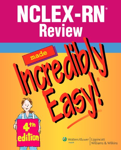 NCLEX-RN® Review Made Incredibly Easy! Fourth Edition uses the well-known Incredibly Easy! approach to make NCLEX® review more interesting, enjoyable, and less difficult. It provides solid clinical information and clear, concise rationales in a light-hearted manner that encourages retention by decreasing study anxiety. Every area of nursing is completely reviewed, including adult care, pediatric care, maternal-neonatal care, psychiatric care, and professional issues. Critical thinking questions accompany each chapter. Fully revised and updated to match the April 2007 NCLEX® test plan, this edition also includes information for international students taking the NCLEX®.