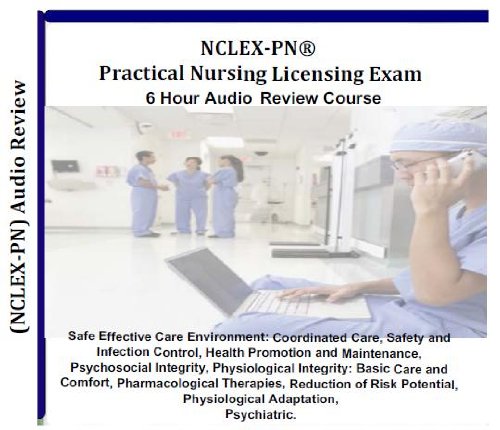 Comprehensive 6 Hour, 6 Audio CDs review for NCLEX-PN® Practical Nursing Licensing Exam. Based only on the National Council of State Boards of Nursing, Inc. (NCSBN) exam requirements. The exam's content is based on client needs: Safe Effective Care Environment: Coordinated Care, Safety andInfection Control, Health Promotion and Maintenance, Psychosocial Integrity, Physiological Integrity: Basic Care and Comfort, Pharmacological Therapies, Reduction of Risk Potential, Physiological Adaptation, Psychiatric.Learn Fast and efficiently through a self contained, self paced learning system. Instructor is professional speaker, program recorded in studio. Study system based only on NCLEX-PN® Practical Nursing Licensing Exam Core Curriculum.Fluff-free presentation covering only essential "need to know" information. No Filler.6 Hours, 6 Audio CDs , Plays in all cd players